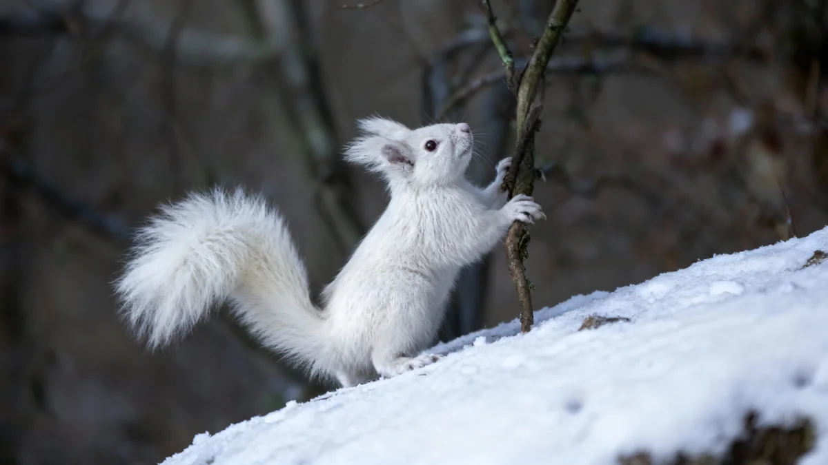 Ein äußerst seltenes Albino-Eichhörnchen wurde in Salzburg entdeckt und von Wildtierfotograf Manfred Hesch fotografiert. Die Wahrscheinlichkeit einer solchen Sichtung liegt bei eins zu 100.000.